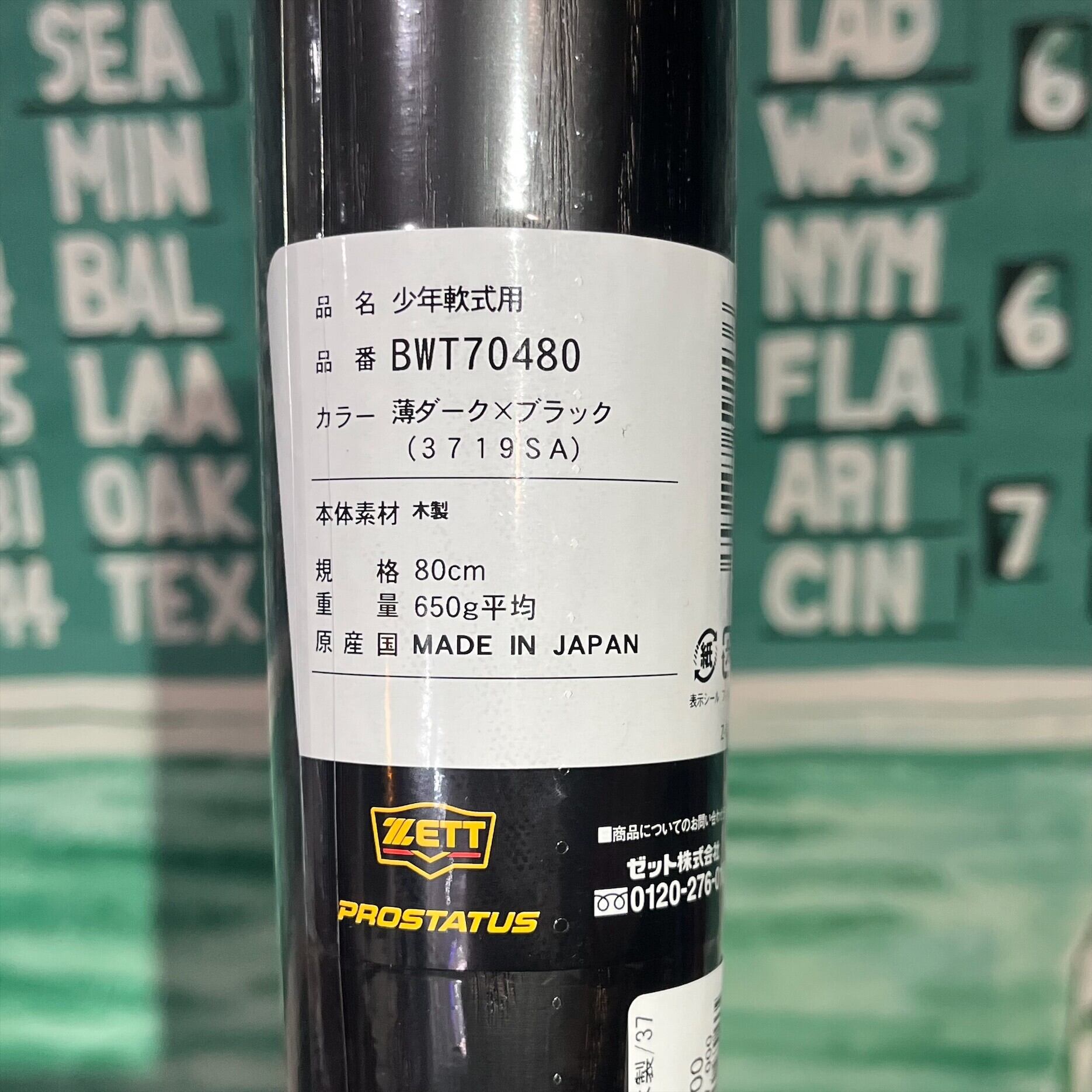 ※本格派のプロステイタス少年軟式木製バット、横浜DeNAベイスターズ佐野選手モデル。